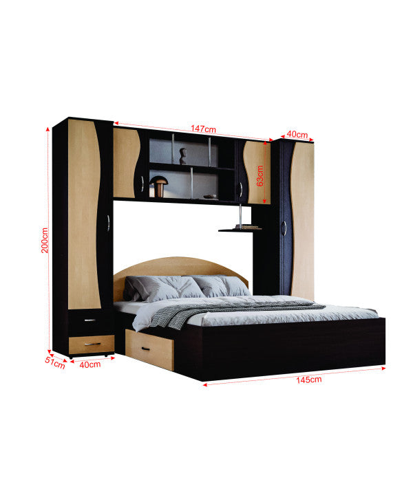 ● 5 sertare ( 4 la cele 2 dulap-uri + 1 la pat )