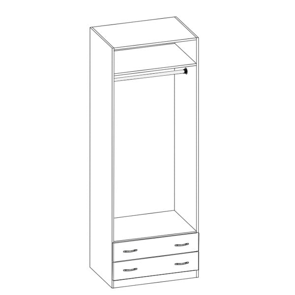 ● Dulapul este pervazut bara de haine , un raft pentru depozitare in partea de sus si 2 sertare.